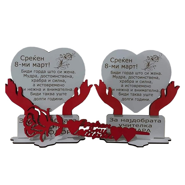 Изразете ја вашата љубов и благодарност со ова уникатно дрвено срце со персонализирана посвета – совршен подарок за 8ми Март. Направено од квалитетно дрво, со внимателно гравирана порака по ваш избор, ова срце е симбол на љубов, почит и внимание.