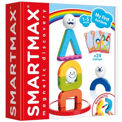 With 6 different geometric building blocks, and 3 metal balls each with a different face; little ones will love creating the coolest looking acrobatic structures!
