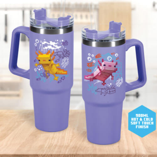- 900ml (30 fluid oz) travel tumbler with handle and straw