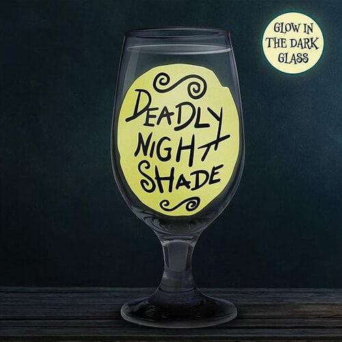 Well, we’ll tell you what it is, fans of Disney’s The Nightmare Before Christmas – a rather epic goblet style drinking glass that we think you’ll be enchanted by! Housed in a collectible gift box, the glass has a glow in the dark motif with the words “Deadly Nightshade” printed grimly on the side. Fill it up with your favourite cold beverage so that, like the shadow on the moon at night, you will fill your dreams to the brim with fright…