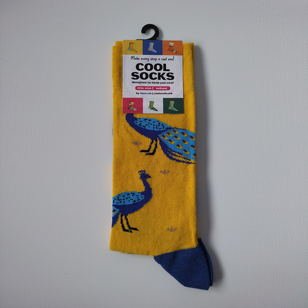 Peacock Parade чорапите се за оние кои сакаат да се истакнат! Инспирирани од величественоста на паунот, овие шарени, квалитетни чорапи ќе внесат живост и стил во секоја комбинација. Направени од мек и удобен материјал, совршени се за целодневно носење – без компромис на комфор или изглед.