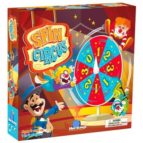 Welcome to the circus! Can you work together with the acrobats to be the star of the show? On your turn roll the dice and pick an acrobat clip on the wheel to move it to another location, this will force the wheel to spin! When the wheel stabilizes, move your pawn on the track, the number shown on the wheel. When you land on a space with a stage act, you must be ready to perform! The first player to reach the end of the track wins and gets a standing ovation from the crowd!