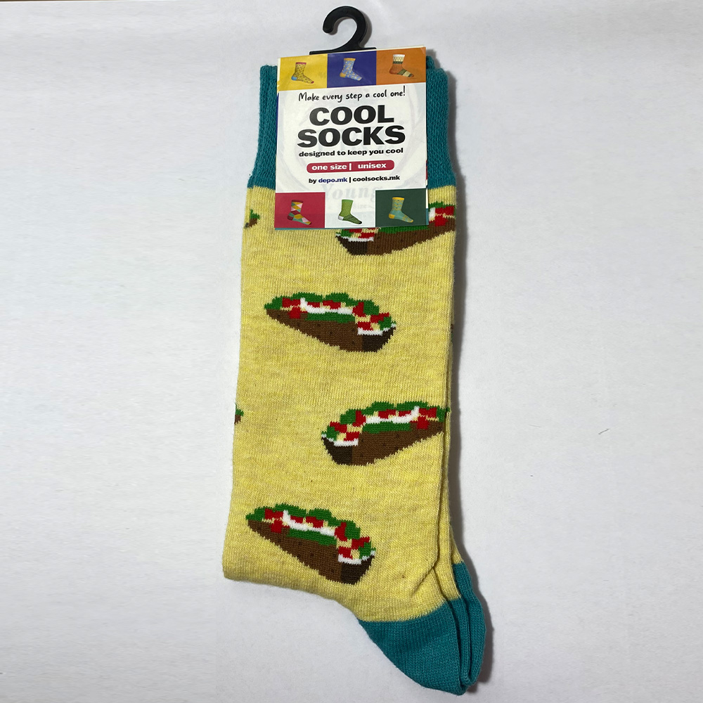 Taco Time чорапите се совршен избор за сите љубители на уникатен стил и удобност. Изработени од квалитетен материјал, овие чорапи нудат мекост и издржливост која ќе ти овозможи да ги носиш цел ден без непријатност. Со живописен дизајн инспириран од омилената храна – такос, тие се одличен начин да го разиграш својот моден изглед.