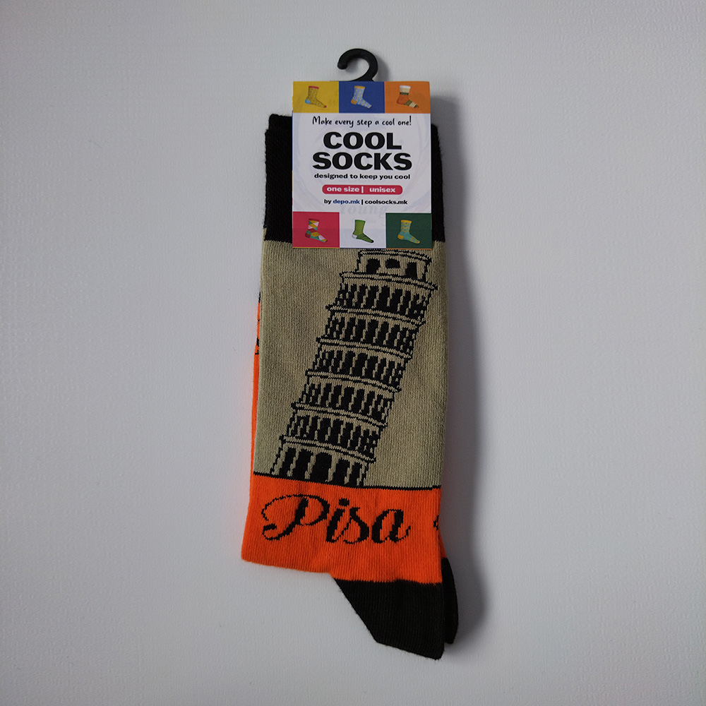Tower Tilt чорапи – уникатен спој на стил и удобност инспириран од светскиот архитектонски бисер, кривата кулата во Пиза. Со впечатлив дизајн кој ја симболизира наклонетоста на кулата, овие чорапи ќе внесат оригиналност и живот во секој твој чекор.