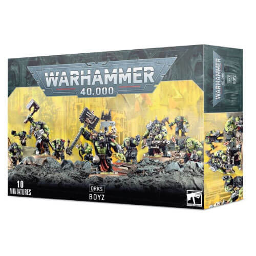 This boxed set contains 11 multi-part plastic Ork Boyz, and includes options for sluggas, choppas, shootas, heavy weapons and stikk bombz. Models supplied with 32 mm round bases.